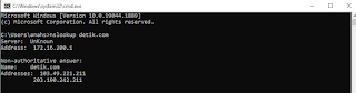 1. langkah pertama kalian harus ke CMD lalu kalian ketik NSLOOKUP DETIK.COM.